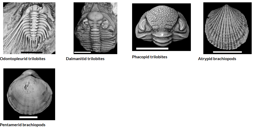 - 해양 생물: 삼엽충, 완족류, 산호류 등이 멸종.