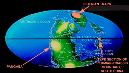- 판게아 초대륙이 분열하며 대규모 화산 활동이 발생했습니다.