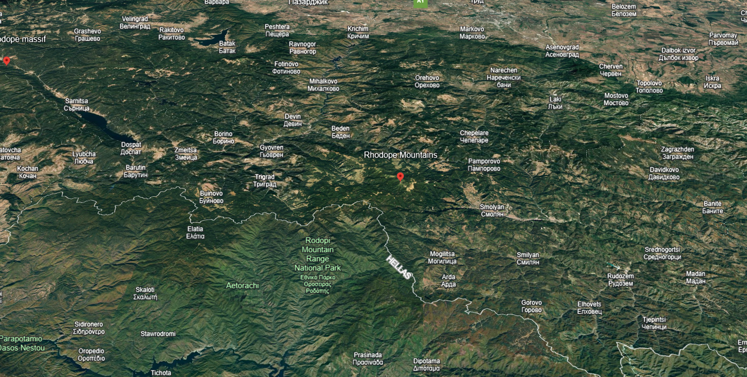 발칸 산 (출처 : 구글 어스) - 로도피 산맥 (Rhodope Mountains)