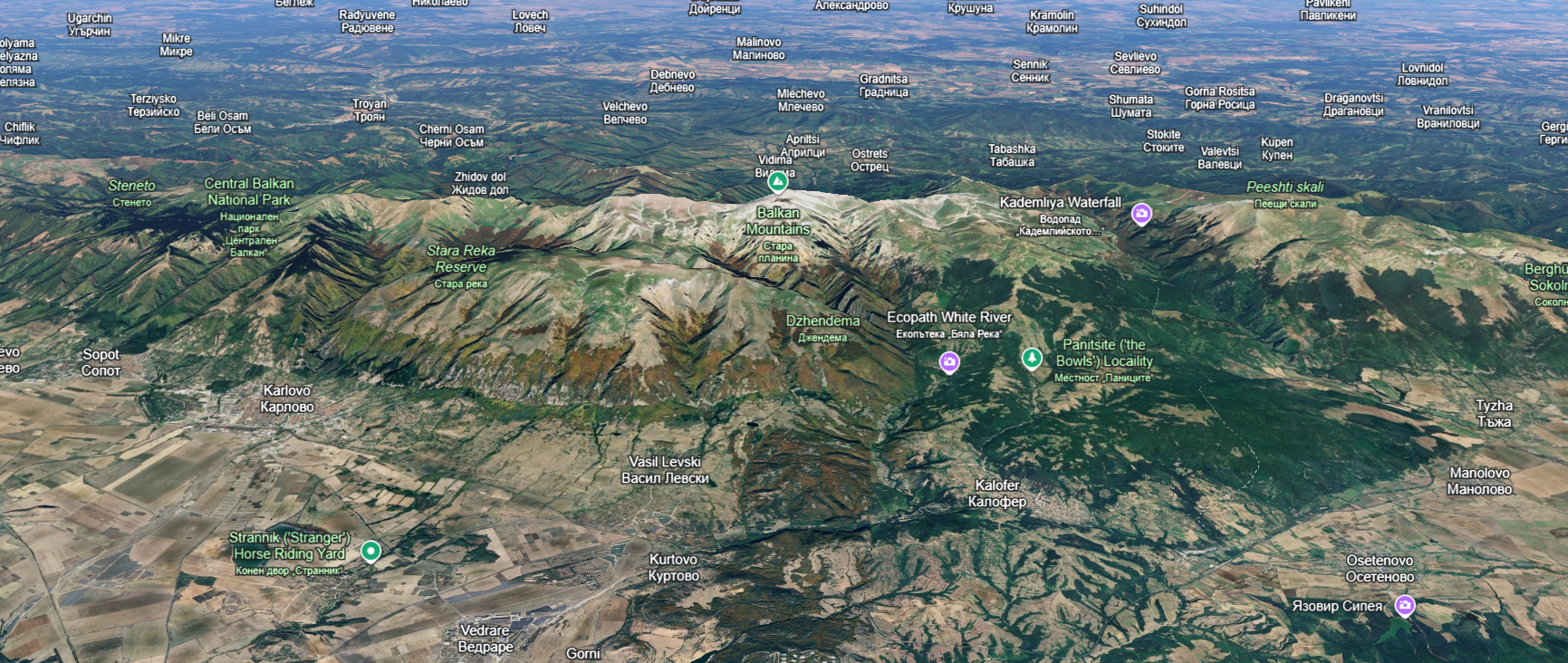 로도피 산맥 (출처 : 구글 어스) - 다뉴브 평야 (Danube Plain)